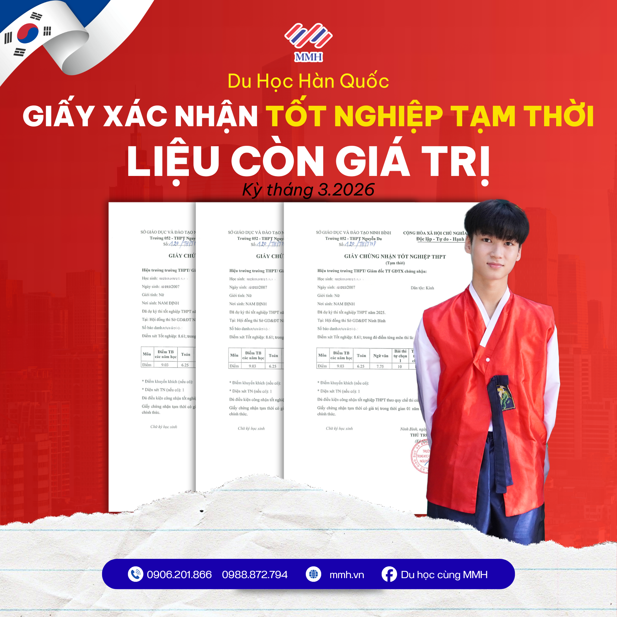 Tóm lại, giấy xác nhận tốt nghiệp tạm thời vẫn còn giá trị sử dụng trong kỳ du học Hàn Quốc tháng 3/2026, ngoại trừ một số trường top yêu cầu bằng gốc.