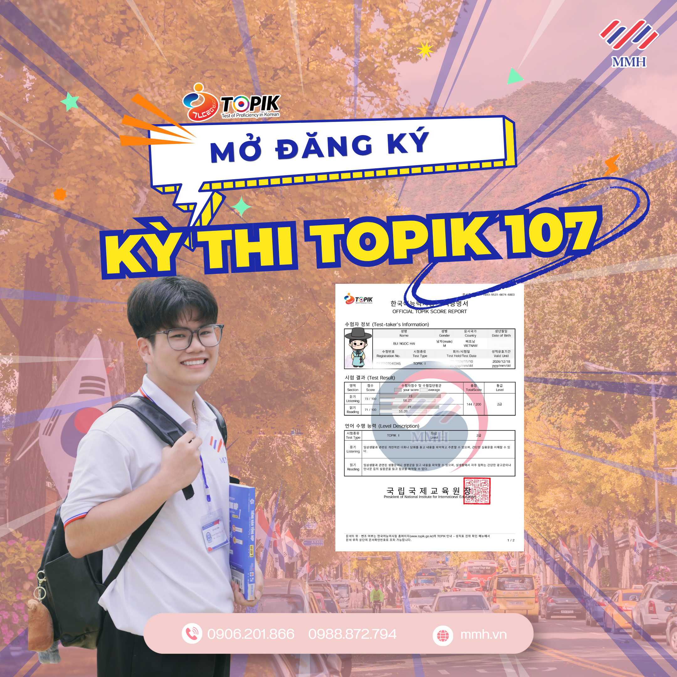 Kỳ thi năng lực tiếng Hàn TOPIK 107 đã chính thức được công bố, là một trong những kỳ thi quan trọng nhất năm 2026 dành cho các bạn đang có định hướng du học Hàn Quốc, săn học bổng hoặc làm việc tại doanh nghiệp Hàn.