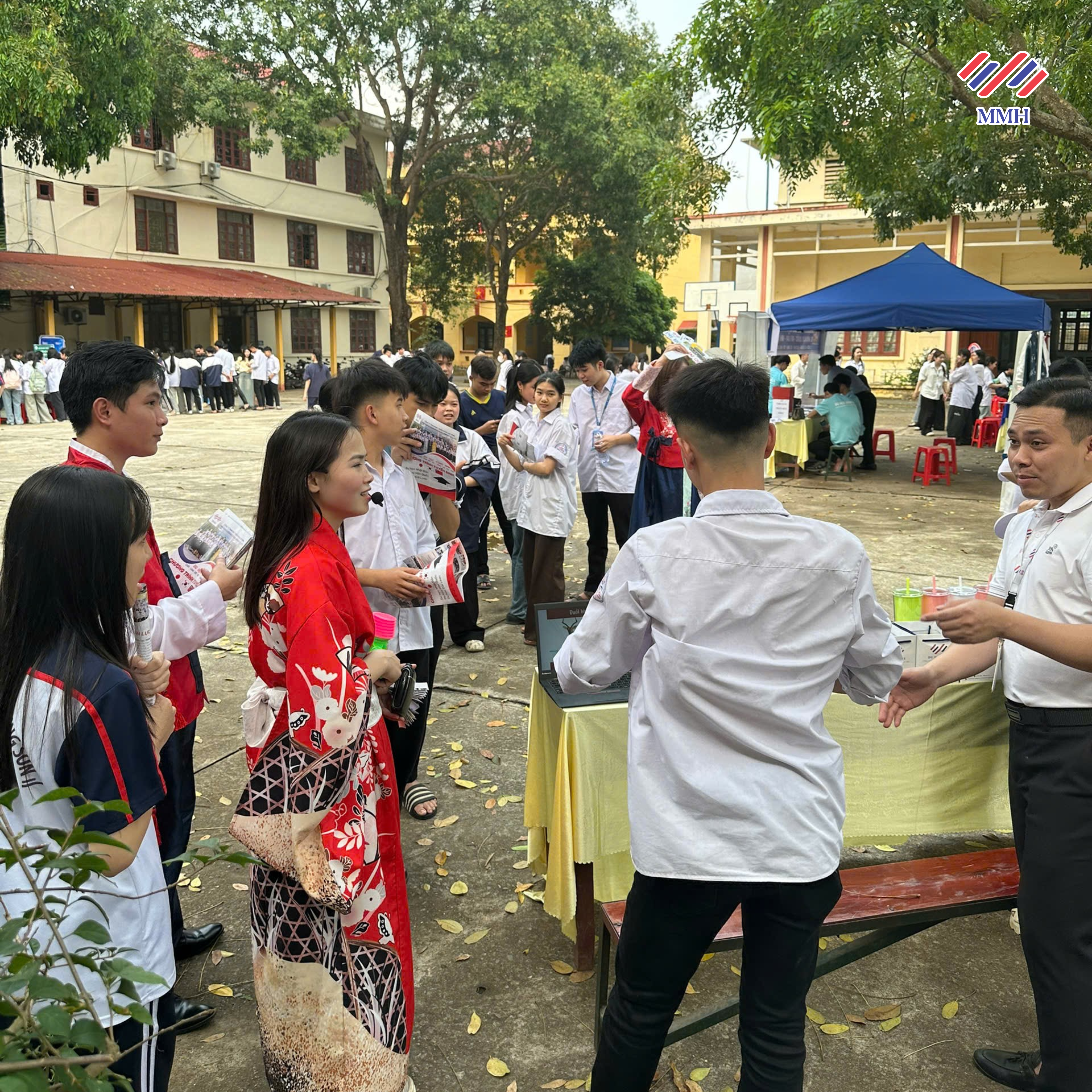 Tại sự kiện, gian tư vấn của Du học MMH đã thu hút sự quan tâm của đông đảo học sinh. Các bạn đã trực tiếp trao đổi với đội ngũ tư vấn về những thông tin quan trọng như: điều kiện du học, chi phí, chương trình học, học bổng cũng như cơ hội làm thêm và việc làm sau khi tốt nghiệp tại các quốc gia như Hàn Quốc, Nhật Bản và Đài Loan.