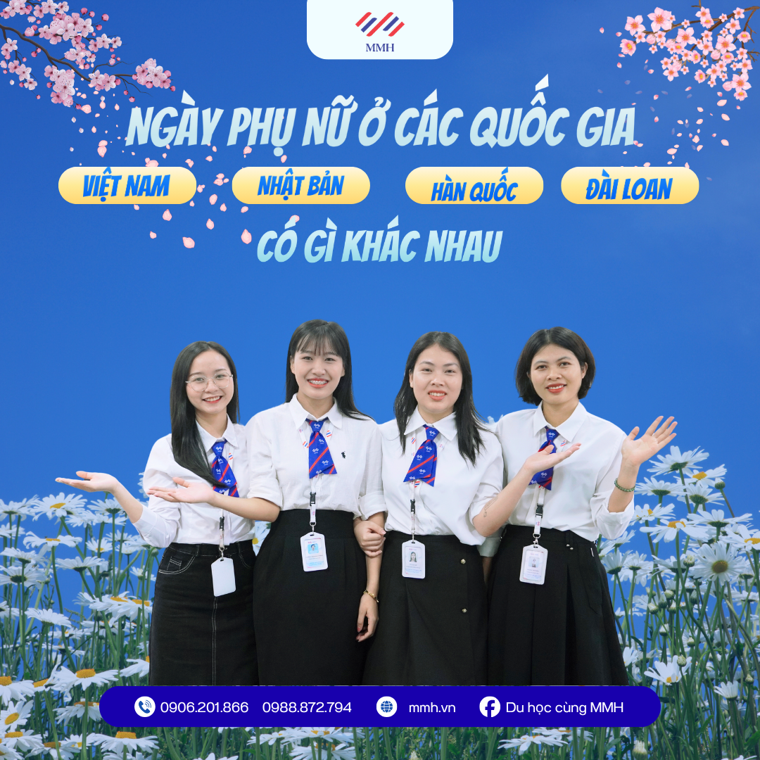 Hôm nay, cùng Du Học MMH tìm hiểu ý nghĩa và cách kỷ niệm ngày Phụ nữ tại Việt Nam, Nhật Bản, Hàn Quốc và Đài Loan – bốn đất nước có nền văn hóa đặc sắc và đều là điểm đến du học mơ ước của nhiều bạn trẻ Việt Nam 💖
