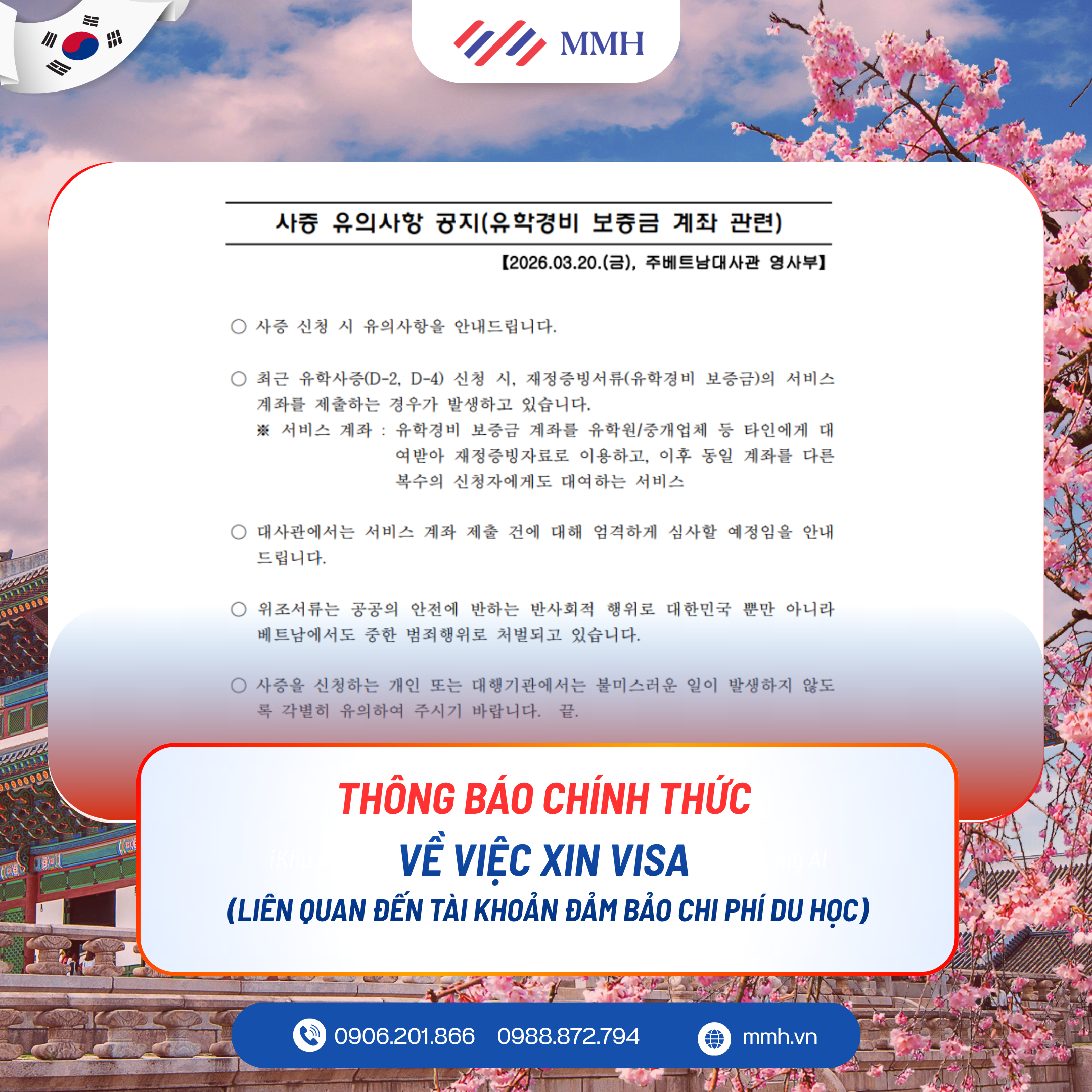 THÔNG BÁO LƯU Ý VỀ VIỆC XIN VISA (LIÊN QUAN ĐẾN TÀI KHOẢN ĐẢM BẢO CHI PHÍ DU HỌC)